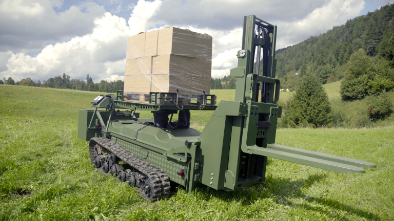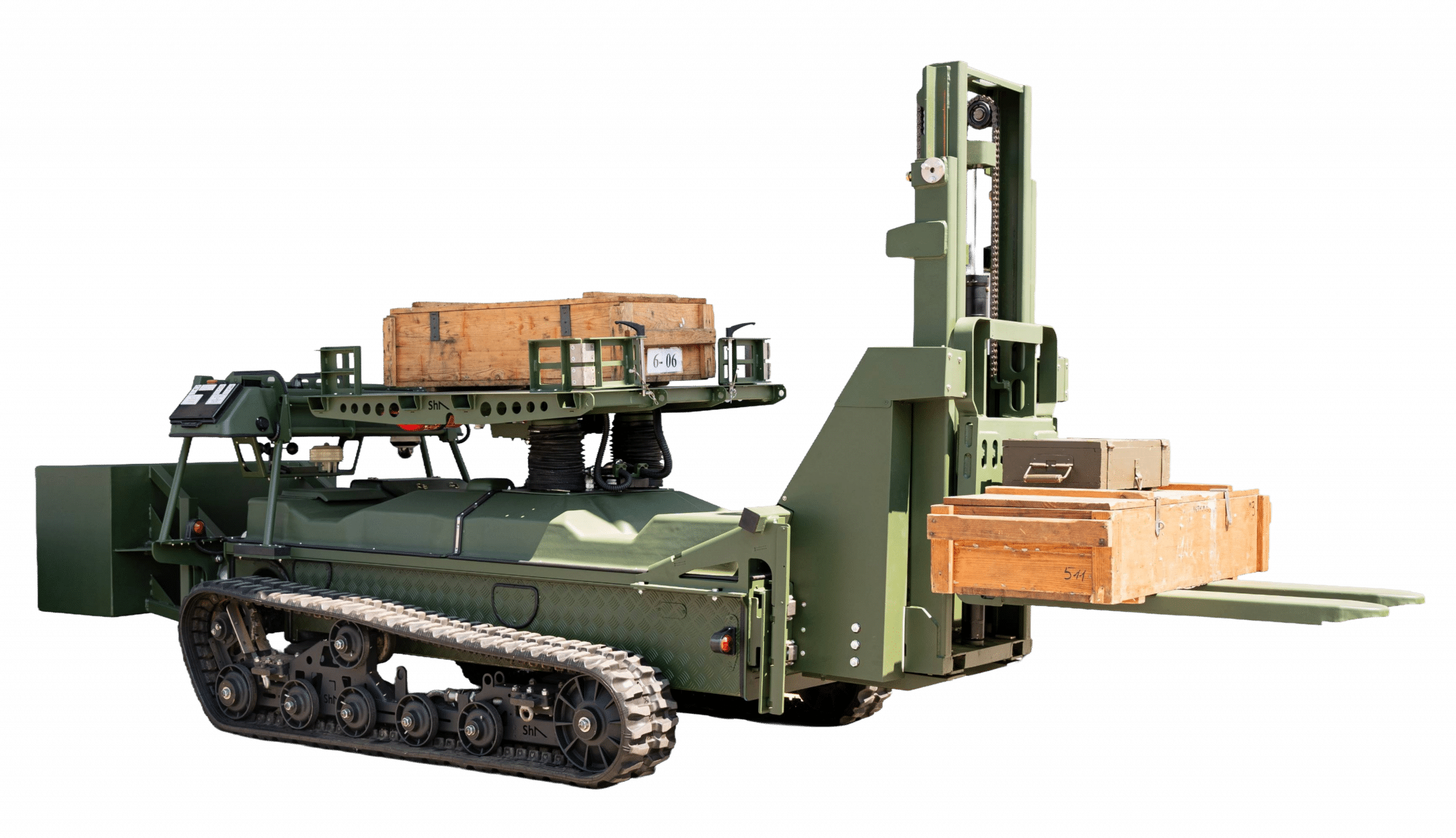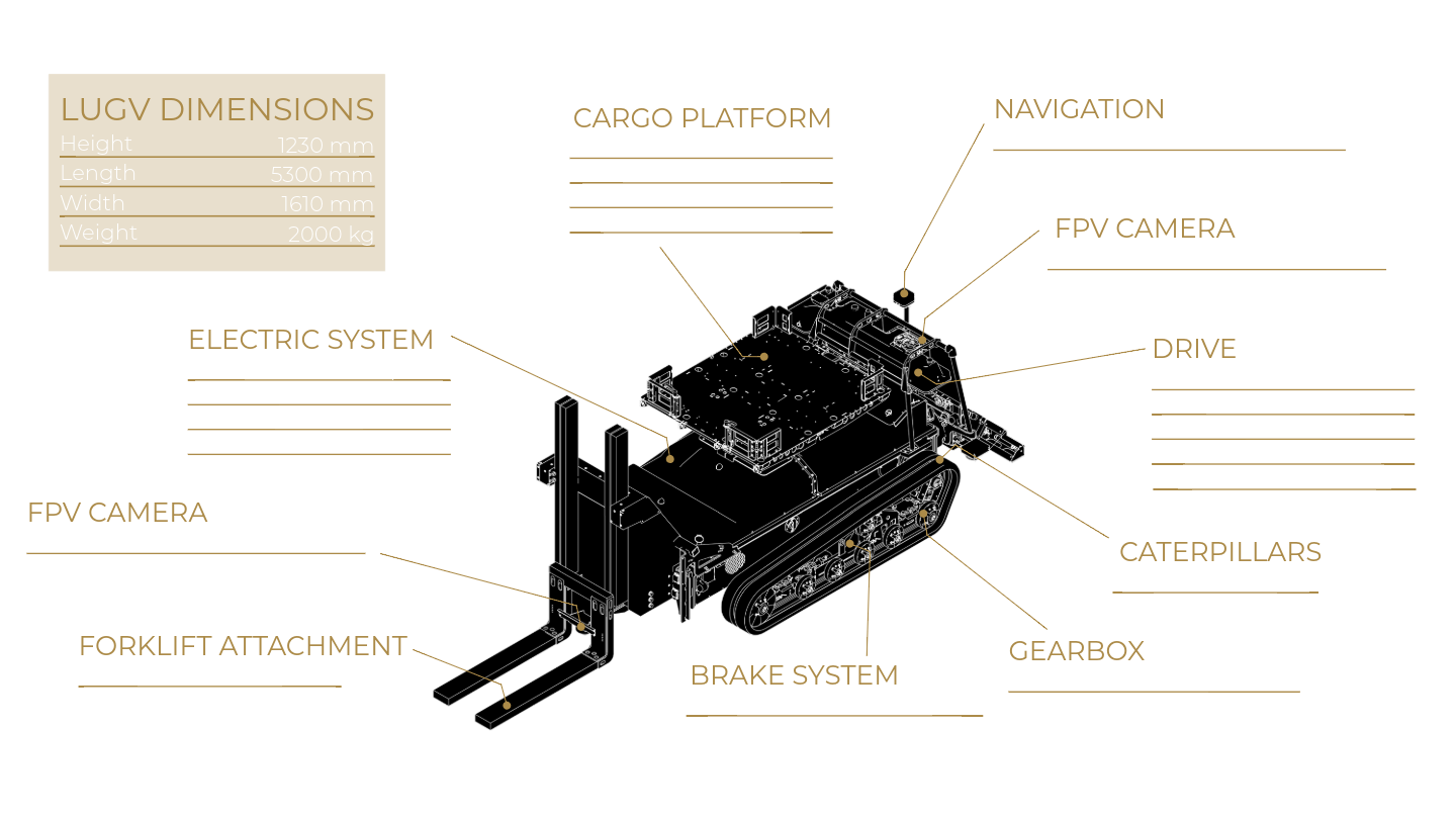 LUGV can transport up to 1.5 tonnes of cargo on its gravity stabilized platform, and offers up to 1 tonne forklift capacity.