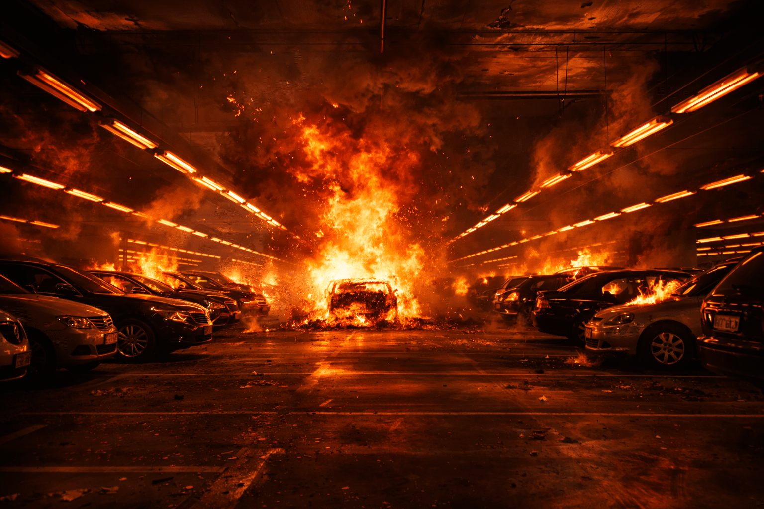 Fires can escalate quickly inside an enclosed garage. The FFRS can respond to the threat in under 3 minutes, even before firefighters arrive. It suppresses flames at the source, operates safely in smoke and heat, and prevents fire spread to nearby vehicles and structures.