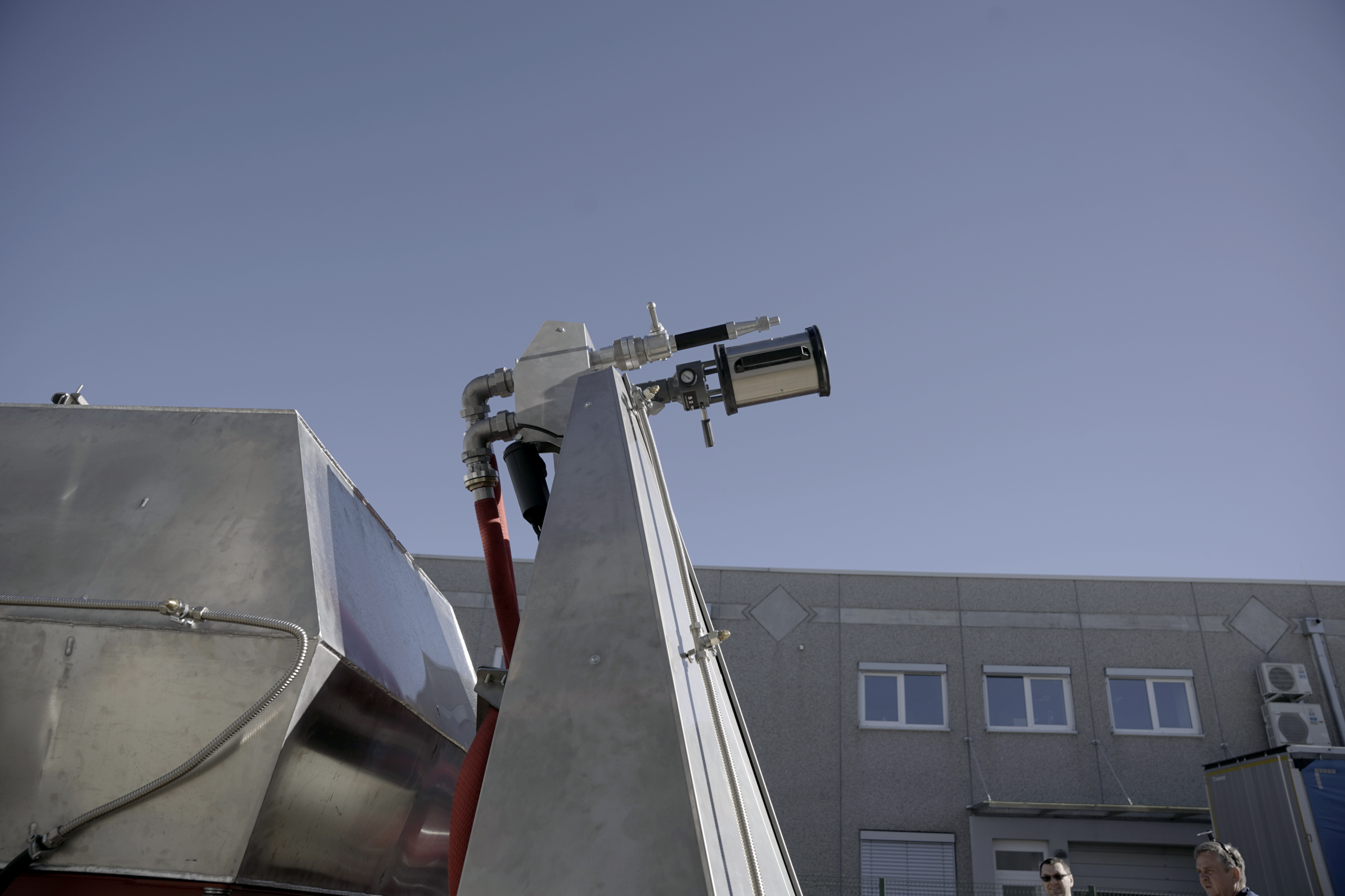 Thanks to a gravity-stabilized cistern design, the system maintains stability on inclines of up to ±32°, ensuring safe operation even on uneven terrain, ramps, or collapsed surfaces.